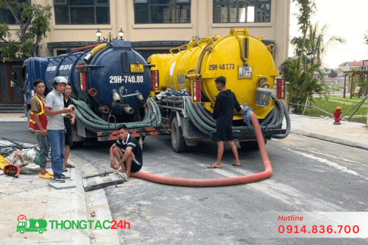 - Đối với các công trình lớn hơn như chung cư, nhà máy, xí nghiệp, thời gian có thể kéo dài từ 1 đến 3 giờ, hoặc thậm chí cả ngày nếu khối lượng chất thải lớn và vị trí khó tiếp cận.
